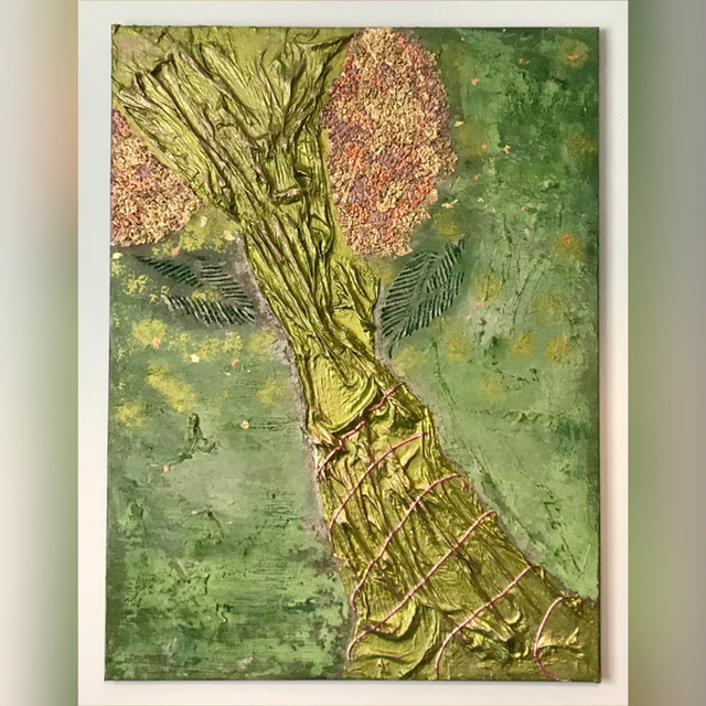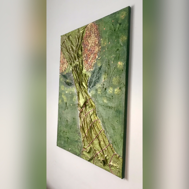 Contemporain, art texturé, acryliques métalliques, feuille d’or